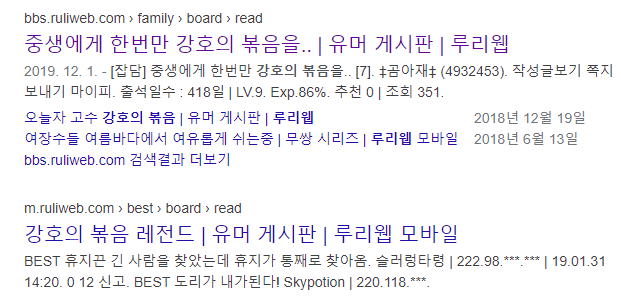 대체로 루리웹에서는 야한 것이 올라왔을때, 이것의 출처나 원본을 찾는 경우가 많기 떄문에 강호의 도리를 찾는 상황은 대체로 야한 것의 원본을 찾는다 라고 이해해도 좋을 것이다.