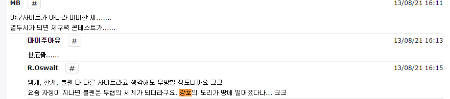 커뮤니티에서 강호의 도리를 제일 먼저 언급한 곳은 MLB파크 BULLPAN이다.