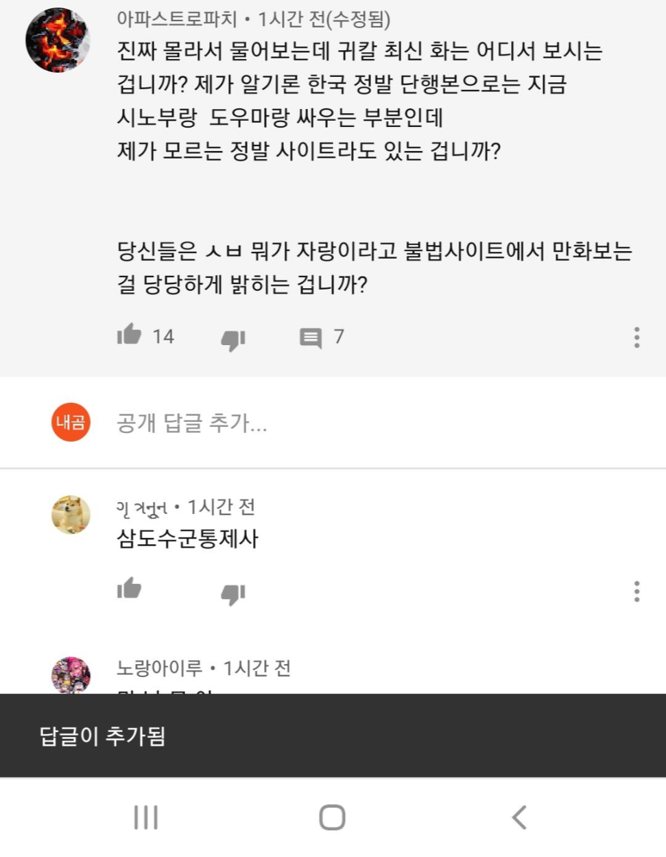 간혹 커뮤니티 댓글을 보면