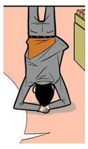 그랜절의 포즈는 위 그림처럼 물구나무 서기처럼 거꾸로 선 다음, 절의 팔동작처럼 90도로 접어서 물구나무서기 자세를 유지하는 것이다.
