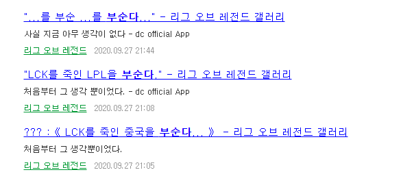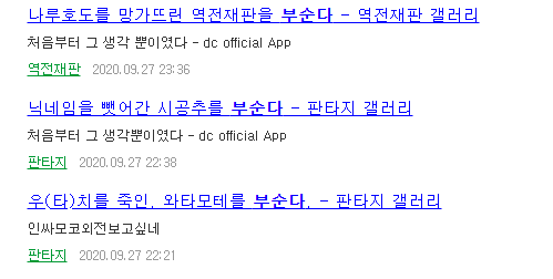 현재 구글 검색이나 디시인사이드 내부 검색을 하면